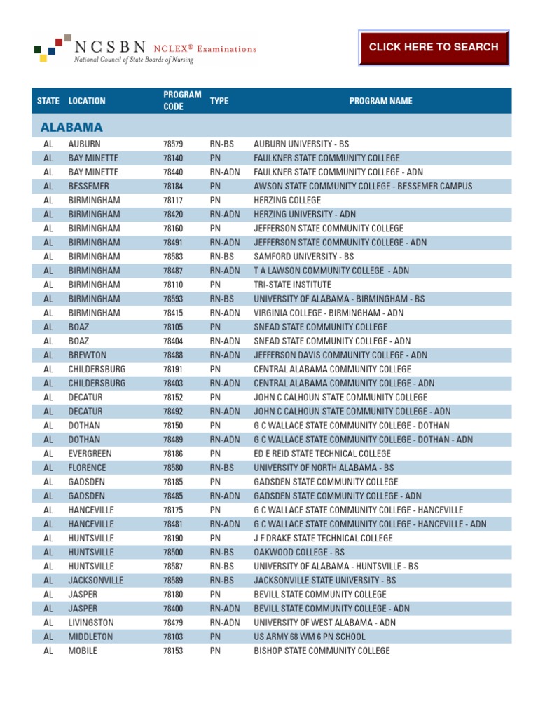 NCLEX Educational Program Codes PDF | PDF | Arizona | Arkansas.